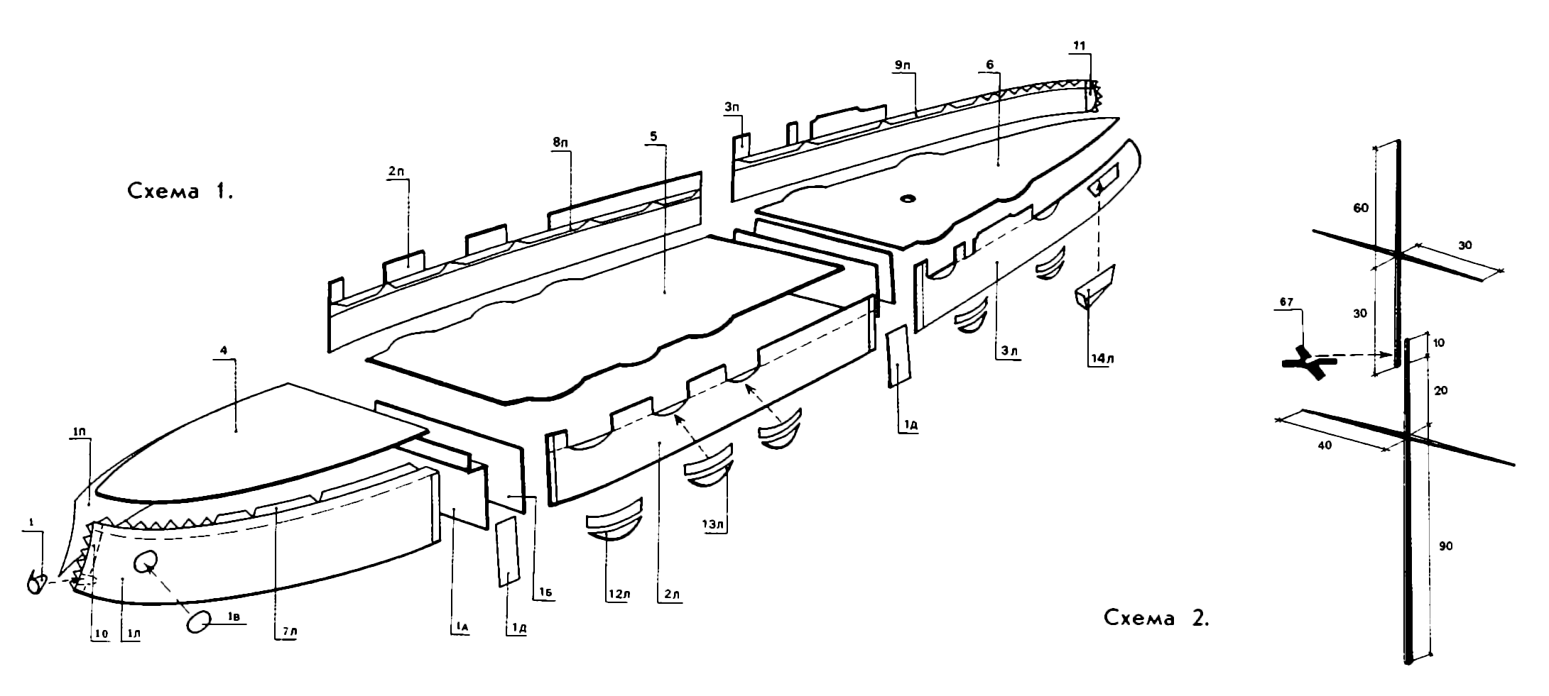 крепления торпедных ниш, в детали 6 - отверстие для крепления мачты